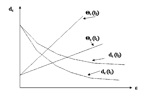 С увеличением ε - dc меньше, θ – больше (повышается плотность дислокаций). Изменения зависят от температуры. Чем больше температура тем медленнее уменьшается dc.