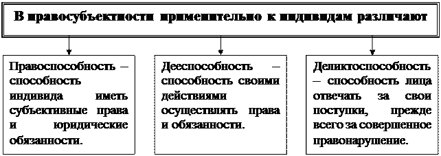 Для того, чтобы быть субъектом правоотношений, организация или индивид должны обладать правосубъектностью. Относительно к государственным, иным организациям, самому государству и его административно-территориальным единицам правосубъективность находит свое выражение в их компетенции, по есть совокупности права и обязанностей, полномочий, предоставленных для выполнения их функций. Компетенция имеет четко определенные рамки и устанавливается нормативно-правовыми актами.