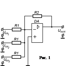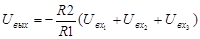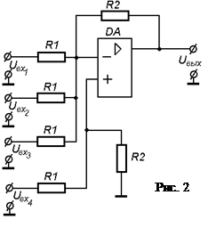 При R1=R2 данный усилитель является масштабирующим. Изменяя значения входных сопротивлений, можно изменять весовые коэффициенты входных напряжений.