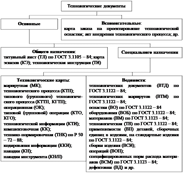 Технологический документ – графический или текстовый документ, который отдельно или в совокупности с другими документами определяет технологический процесс (ТП) или операцию изготовления изделия (рисунок 1).