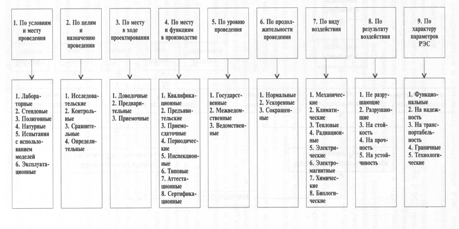 Контрольные испытания проводятся для контроля качества РЭС. Испытания этого вида составляют многочисленную группу испытаний.