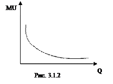 Предельная полезность (MU) – это прирост общей полезности при увеличении объема потребления данного блага на 1 единицу: MU = DTU/DQ.