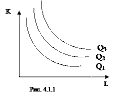 Q1; Q2; Q3 - карта изоквант. Изокванта (кривая равного продукта) показывает различные комбинации затрат, которые обеспечивают одинаковый объем выпуска продукции.