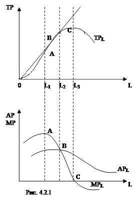Предположим, что капитал (К) – постоянный фактор, а труд (L) – переменный фактор. В условиях, когда один ресурс является переменным, используются понятия: