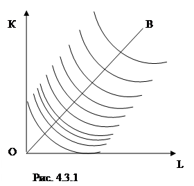 Чем ближе изокванты друг к другу, тем больше проявляется положительный эффект масштаба. Стабильное расстояние между кривыми характеризует постоянный эффект масштаба. Чем больше расстояние между изоквантами, тем больше отрицательный эффект масштаба.