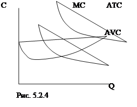- MC = ATC = AVC в точках минимума средних и среднепеременных издержек.