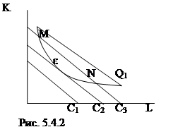 В точке e углы наклона изокванты и изокосты одинаковы, т.е. MRTS = - РL / РK или DК / DL = РL / РK.