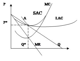 Точка А – точка долгосрочного равновесия, где p = 0 (p - прибыль).