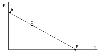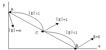Приведем без доказательства следующее положение. Если функция спроса линейна, то коэффициент эластичности спроса по цене в точке C по модулю равен отношению отрезков ВС и АС: