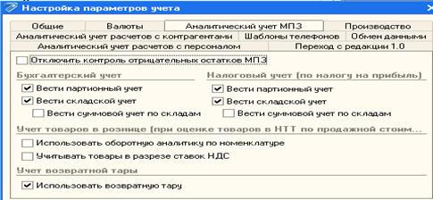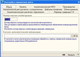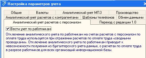 Один из основных этапов настройки. Осуществляется специальной обработкой. Обращение к настройке аналитического учета осуществляется через меню «Предприятие- Настройка параметров учета», либо из формы сведений об учетной политике предприятия.