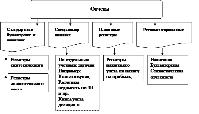 Все отчеты, формируемые в программе можно объединить в четыре группы.