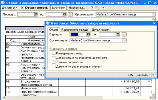 Все стандартные отчеты, предусмотренные в программе, отражают данные синтетического и аналитического учета. Они имеют следующие инструменты настроек: