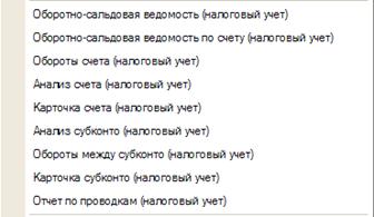 Программа позволяет формировать следующие стандартные регистры синтетического учета для бухгалтерского и налогового учета: