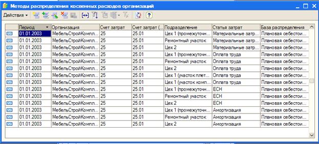 Ø распределение общепроизводственных и общехозяйственных расходов в бухгалтерском учете. База распределения косвенных расходов устанавливается в регистре сведений «Методы распределения косвенных расходов организации»;