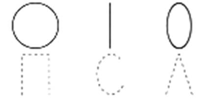 5. Узнай по контуру. Выдайте каждому ребенку по листу бумаги с графическим заданием «Узнай по контуру» (рис. 3, с. 22). Предложите детям обвести фигуры и спросите, кого из героев сказки напоминает каждая из них. Уточните названия фигур: круг, прямая линия, овал.