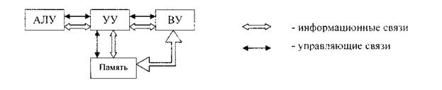 АЛУ и УУ объединены в единое устройство – процессор (центрально обрабатывающее устройство).