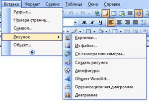 Применение графических элементов. Графические элементы могут быть добавлены в документ Word с помощью его встроенных средств, загружены из файла или созданы в кугой программе. В двух последних случаях такие элементы называются рисунками.