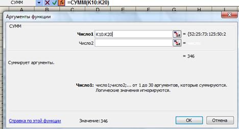 При отсутствии ошибок в строке формул будет содержаться формула с заданной функцией, а в ячейке – значение, рассчитанное по этой формуле.