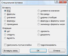 Рис. 9.5. Диалоговое окно «Специальная вставка»