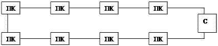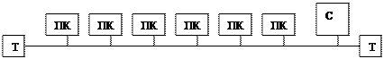 Шинная топология реализуется кабелем, называемым магистралью или сегментом и прокладываемым от одного компьютера к другому в виде последовательной цепочки (рис.1).