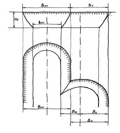 - узким (ширина забоя поверху B ПТ < 1, 5Rкоп max),