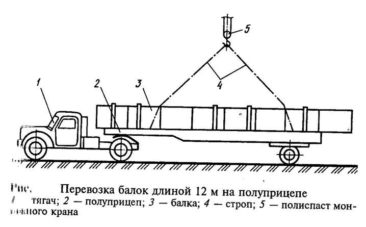 | Стропильные фермы, балки | Автофермовозы (ж/б фермы до 30м) | ПФ-1218 с тягачом МАЗ-504А ж/б ферм длиной 12 и 18м и массой до 12т; ПФ-2124 с тягачом КрАЗ-258 ферм длиной 24м и массой до21т и др. |
