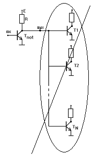 Основной транзистор закрыт, а остальные насыщенны.