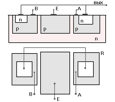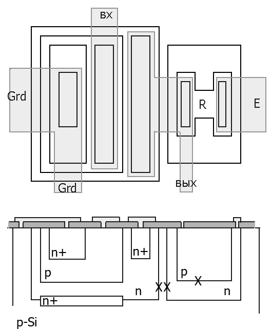 Где нет явно транзистора и резистора, там проектируется топология и структуры.