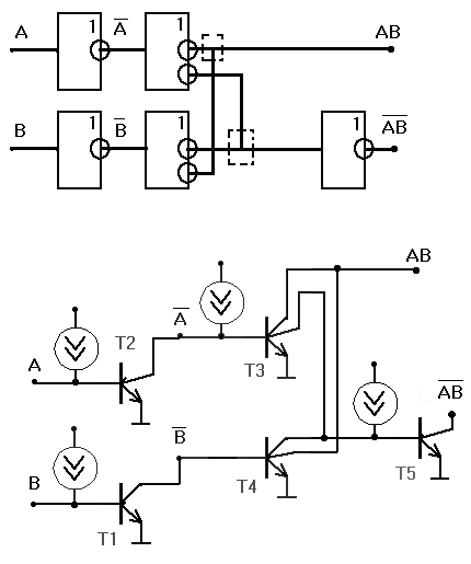 Вывод: Объединение входов инжекционных инверторов реализует функцию монтажное И.