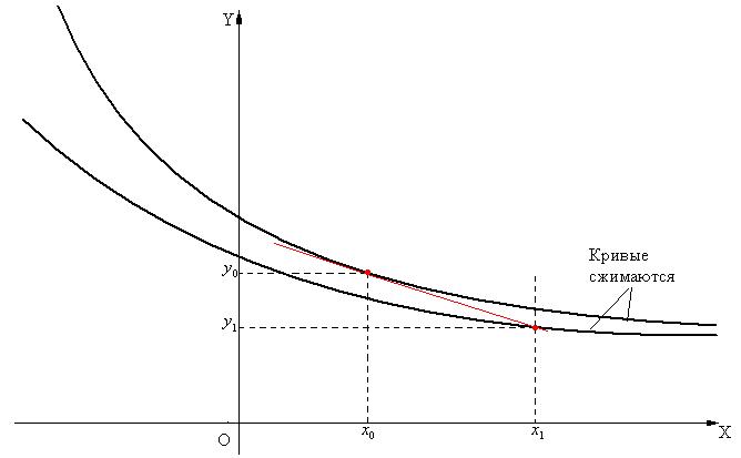В общем случае на каждом шаге приближения приближенное решение переходит на новую кривую из представленного множества решений. Для некоторых дифференционных уравнений это вызывает большие погрешности. Например, если мы имеем уравнение