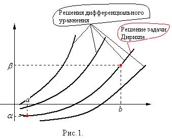 Будем предполагать, что любая краевая задача имеет единственное решение (в отличие от количества решений дифференциального уравнения, которых бесконечно много). Из множества решений дифференциального уравнения выбирается то, которое удовлетворяет условиям (2) (геометрически – проходит через две точки с координатами