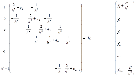 Вместо задачи (1), (2) мы получили дискретную задачу (3), (4) - СЛАУ. Количество уравнений