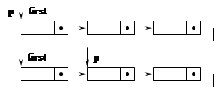 | p:=first; | { установка вспомогательного указателя на первый узел списка } | ||