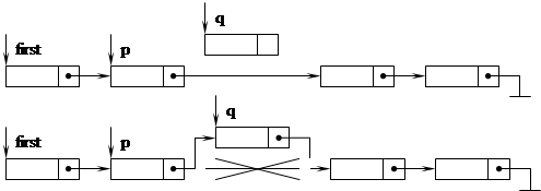 | p:=first; | { установка вспомогательного указателя на первый узел списка } | ||