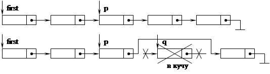 | q^.link:=p^.link; | { заполнение поля связи нового узла } | |||