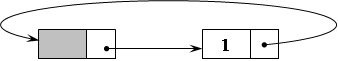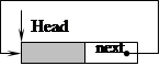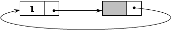 Выполнение условия head = nil означает, что односвязный циклический список не существует. Выполнение условия head ^. link = head означает, что односвязный циклический список существует, но является пустым, т.е. содержит только головной элемент. Пустой циклический список с головным элементом представляется структурой элементарного кольца (рис. 30).