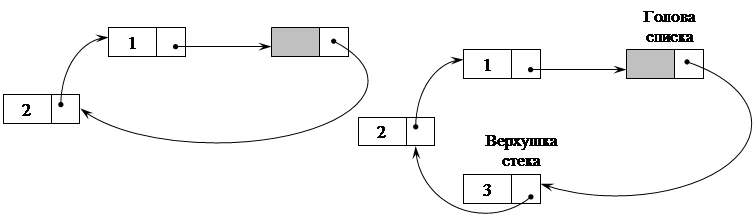 Рис. 32. Создание стека на структуре односвязного циклического списка