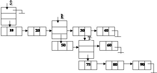 Эта запись означает, что набор, идентифицируемый указателем S, состоит из пяти элементов: атомов, содержащих значения 10 и 20, набора, идентифицируемого указателем R, и атомов, содержащих значения 30 и 40. Аналогично описаны наборы R и T.