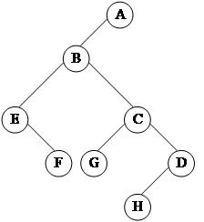 Существуют различные алгоритмы преобразования дерева произвольной степени, т.е. дерева общего вида, к виду бинарного. Левосторонний алгоритм формулируется следующим образом: у каждого узла дерева произвольной степени необходимо сохранить самую левую связь, а узлы – потомки одного и того же узла следует соединить правой связью. На рис. 66 представлено исходное дерево общего вида, а на рис. – эквивалентное бинарное.