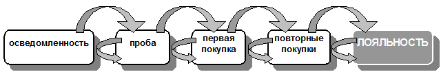 При этом появилось понятие жизненного цикла клиента, начиная от первого контакта и привлечения его внимания к товару или услуге и кончая формированием лояльности.