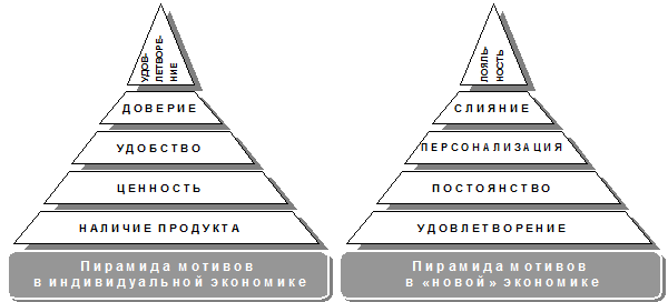 Рис. Пирамида мотивов индустриальной и «новой» экономики