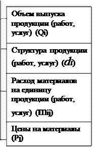 Начать анализ рекомендуется с обобщающих показателей. Общая материалоотдача (как и материалоемкость) изменяются под влиянием ряда факторов, что отражает следующая блок-схема (рис. 2.4.).