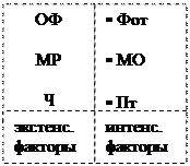 Обеспечить увеличение выпуска продукции можно за счет экстенсивного либо интенсивного использования ресурсов. Взаимосвязь величины производственных ресурсов (экстенсивные факторы) и эффективности их использования (интенсивные факторы) с объемом продукции отражают следующие факторные модели: