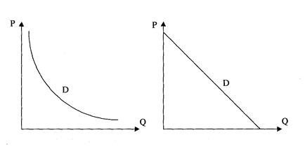 Если функция спроса представлена линейной зависимостью, то прямая функция спроса может быть представлена как Qd= а – bР, а обратная функция спроса как Рd= a/b – (1/b)Q