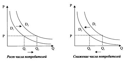 Еще один фактор, влияющий на спрос, - количество потребителей. Действительно, есть разница между тем, когда в магазин пришел один ученик и купил, например, одну шоколадку, и когда в магазин зашли двадцать учеников с намерением купить по крайней мере по одной шоколадке. Таким образом, чем больше количество потребителей, тем выше рыночный спрос. Если число потребителей вырастет, спрос на товар увеличится. Если число потребителей снизится, спрос на товар сократится.