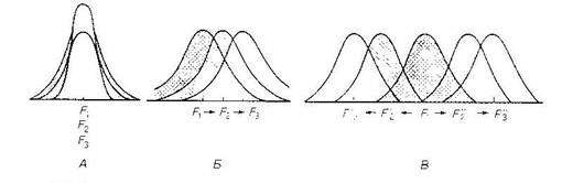 2).Движущийотбор благоприятствует изменению среднего значения признака в измененных условиях среды. Он обусловливает постоянное преобразование приспособлений видов соответственно изменениям условий существования. Особи популяции имеют некоторые отличия по фенотипу и генотипу. При длительном изменении внешней среды преимущественно в жизнедеятельности и размножении может получить часть особей вида с некоторыми отклонениями от средней нормы. Это приведет к изменению генетической структуры, возникновению эволюционно новых приспособлений и перестройке организации вида. Вариационная кривая смещается в направлении приспособления к новым условиям существования.