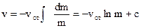 Величину с определим из начальных условий. Если в начальный момент скорость ракеты равна нулю, а масса равна