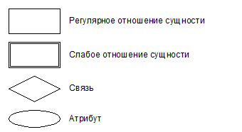 Чен предложил следующие графические элементы для представления модели сущность-связь.