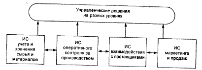 В любой фирме желательно иметь несколько локальных экономических информационных систем разного назначения, которые взаимодействуют между собой и поддерживают управленческие решения на всех уровнях. На рис. 15 показан один из таких вариантов.