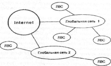 Интернет представляет собой глобальную компьютерную сеть. Само ее название означает "между сетей". Это сеть, соединяющая отдельные сети (рис. 27).